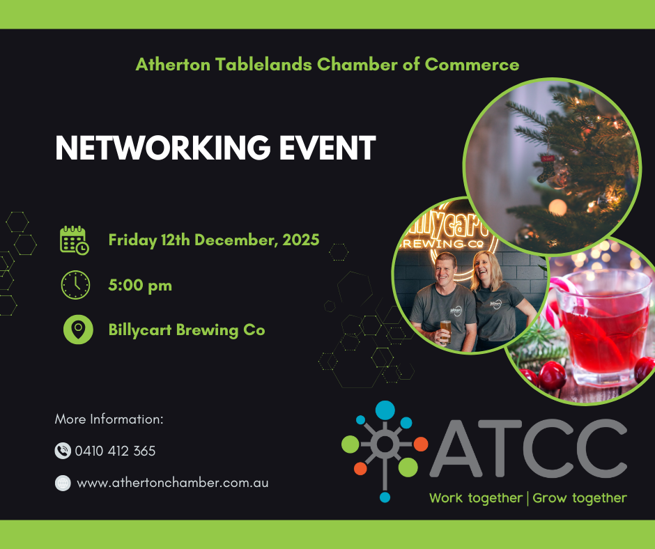 Our focus is to support local business to increase their visibility, provide networking opportunities, advocacy in relation to business and industry in the region and work with local, State and other statutory agencies and organisations, for the benefit of the Atherton Tablelands community.